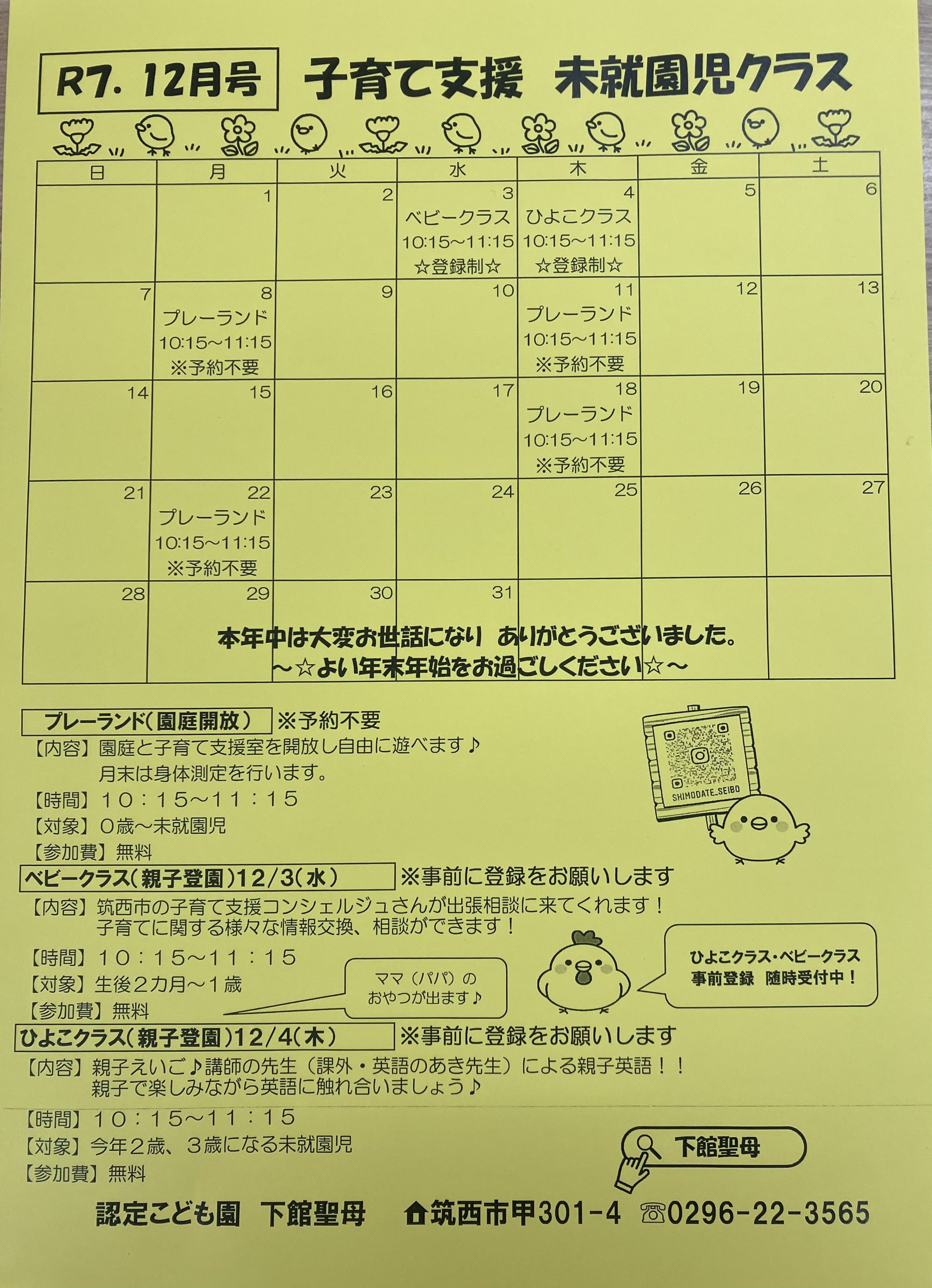 2025年11月28日 / 最終更新日時 : 2025年11月28日 shimodate-seibo 子育て支援 未就園児クラス12月 Facebooktwitter コメントを残す コメントをキャンセルメールアドレスが公開されることはありません。 ※ が付いている欄は必須項目ですコメント ※ 名前 ※ メール ※ サイト 次回のコメントで使用するためブラウザーに自分の名前、メールアドレス、サイトを保存する。 Δ