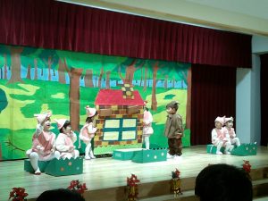 年少組(3歳児)は、おゆうぎ「レッツ!ポケるんフレンド」オペレッタ「おおかみと七ひきのこやぎ」を発表しました!緊張したけれど、練習の成果を発揮して、楽しみながら舞台に立つことができました♡