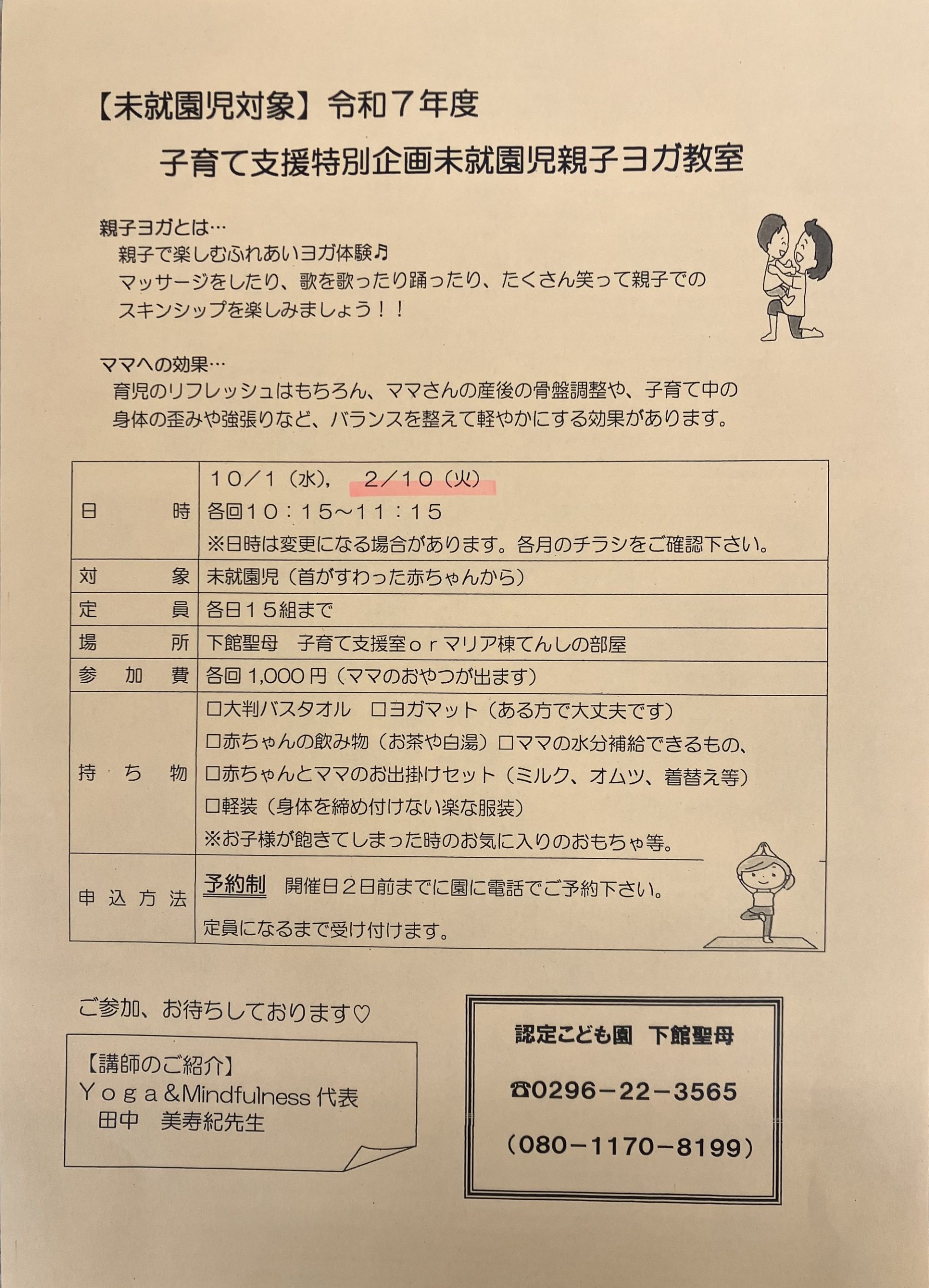 2026年1月10日 / 最終更新日時 : 2026年1月10日 shimodate-seibo 未就園児 親子ヨガ Facebooktwitter コメントを残す コメントをキャンセルメールアドレスが公開されることはありません。 ※ が付いている欄は必須項目ですコメント ※ 名前 ※ メール ※ サイト 次回のコメントで使用するためブラウザーに自分の名前、メールアドレス、サイトを保存する。 Δ